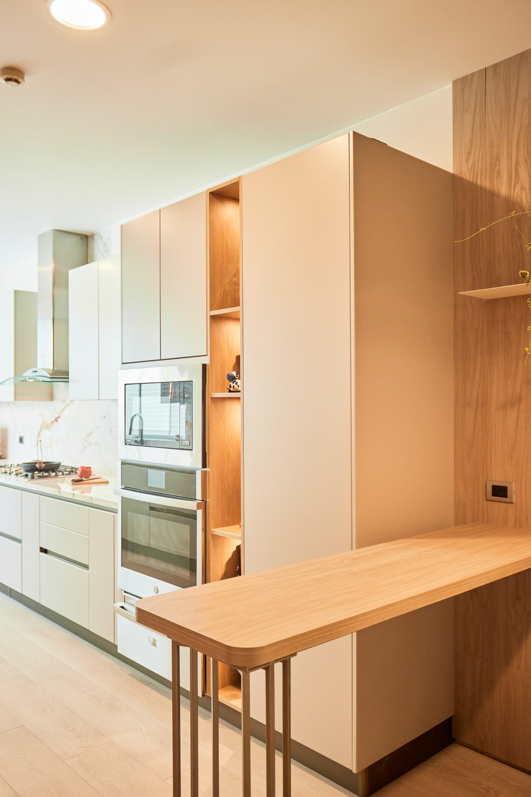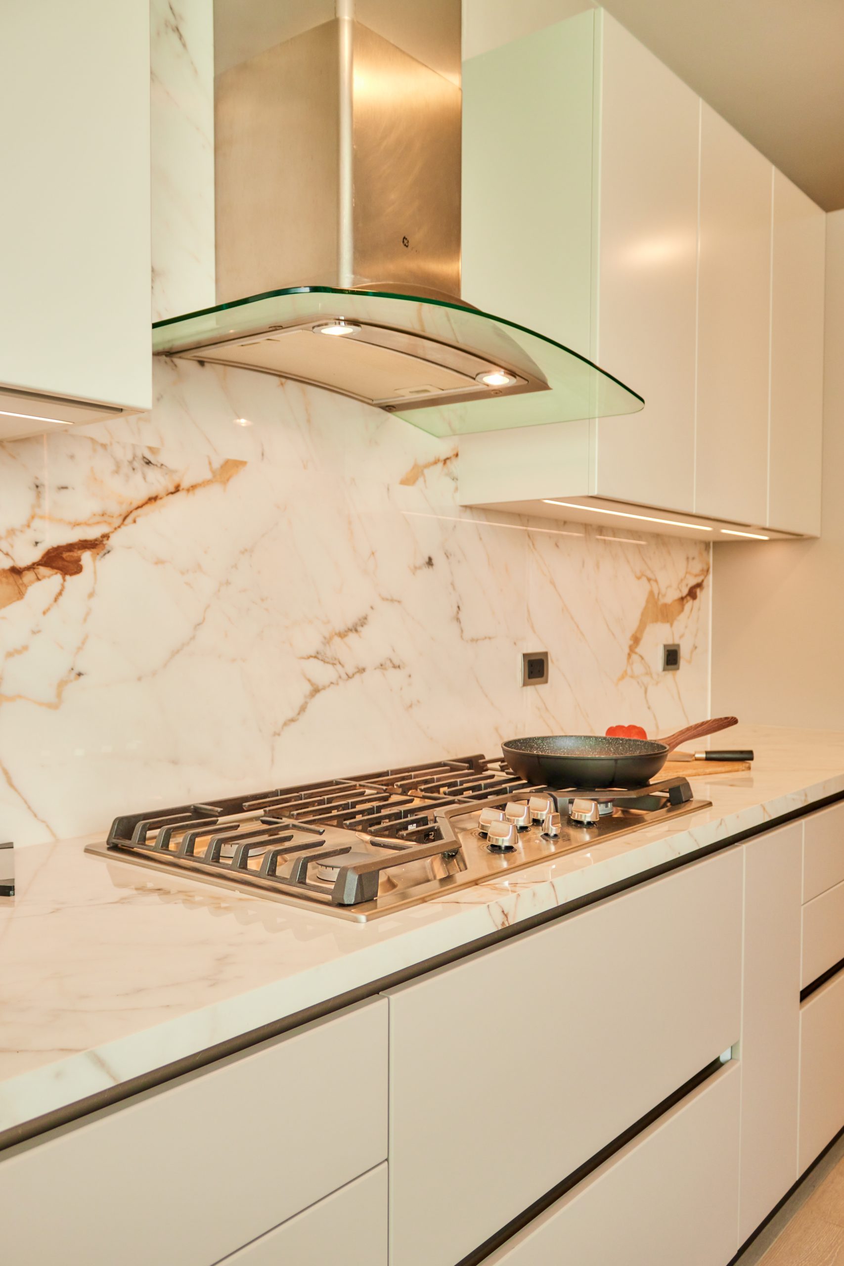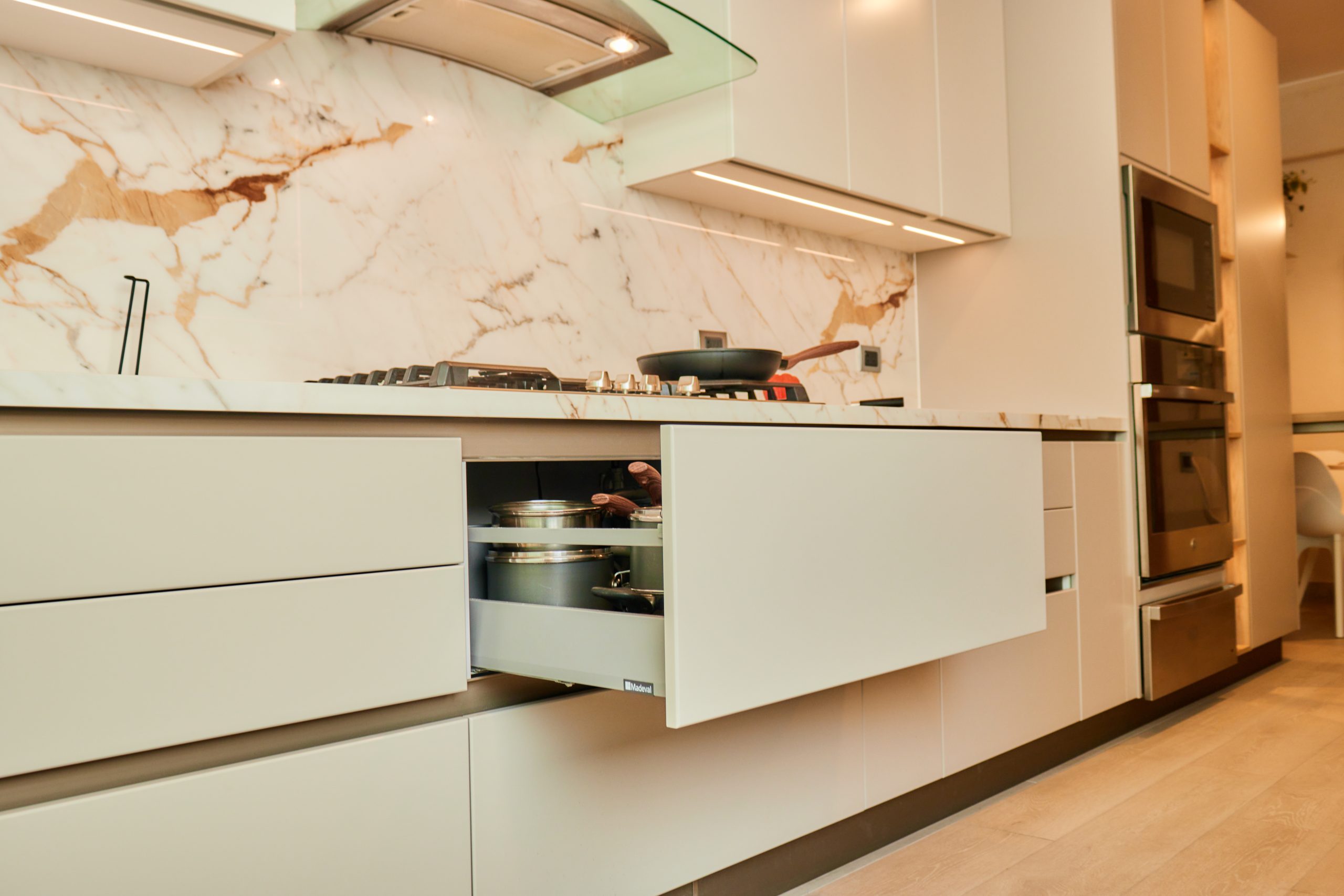 Esta cocina se caracteriza por su diseño único y versátil. Esta cocina refleja la esencia con un equilibrio ideal entre calidez y modernidad. Los tonos neutros, la superficie técnica y la iluminación sutil crean un ambiente acogedor y sofisticado.