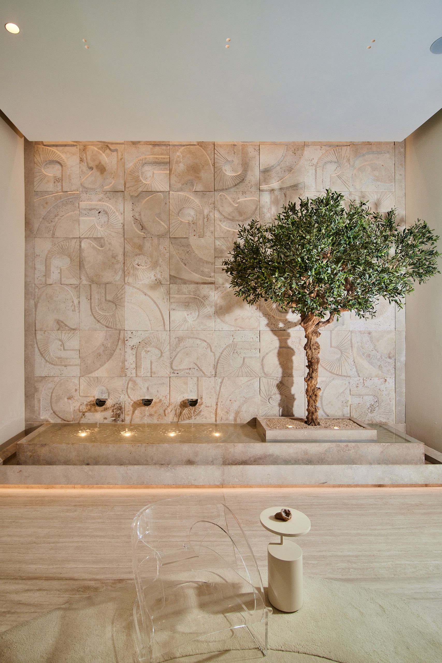 En CASACOR 2025, el estudio Karim Chaman Arquitectos presenta «Renacer», un espacio que rinde homenaje a la esencia viva de los materiales naturales. El punto de partida es la piedra travertino peruana en acabado wash, trabajada con una precisión artesanal que permitió desarrollar nueve patrones distintos. Combinados entre sí, dan lugar a 58 piezas únicas, cada una con su propia expresión. Este mismo material, en su estado más noble, también da forma a las mesas del espacio, que han sido esculpidas cuidadosamente para integrarse con coherencia y sutileza al lenguaje general de la propuesta; cada una con su propia expresión.